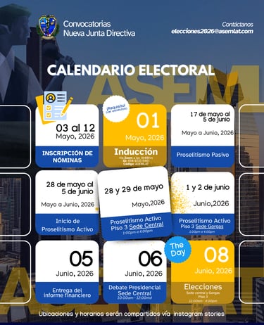 Todos los documentos anteriormente mencionados deberán ser enviados en formato digital (PDF), debidamente firmados cuando corresponda, al correo electrónico: elecciones2026@asemlat.com